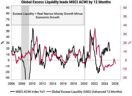 Second, our Global Excess Liquidity indicator is now firmly in negative territory after briefly turning positive at the turn of the year.