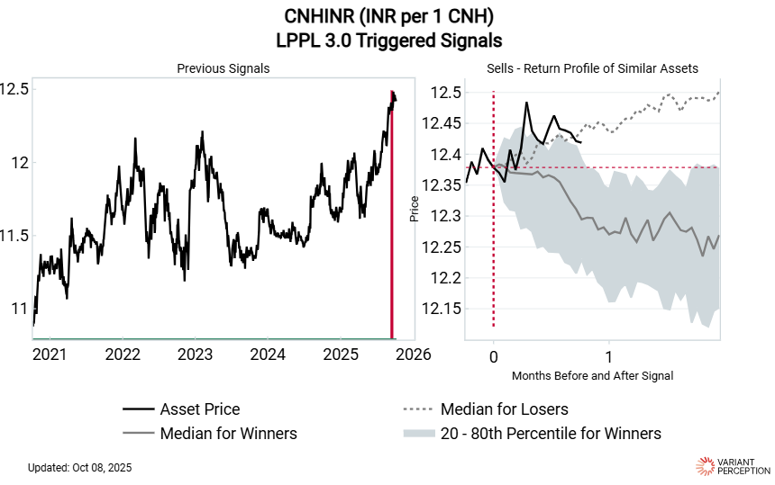 - Close short CNHINR: Close for flat PnL. We are moving on as the price action has failed to follow through on typical LPPL bubble climax signals.
