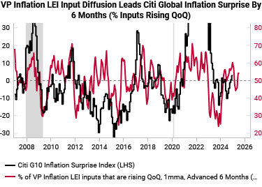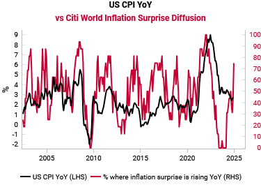 Globally, the breadth of inflation is also picking up again. The diffusion of all the raw input data into our inflation models is rising again. Inflation surprises are also rising again in more regions.
